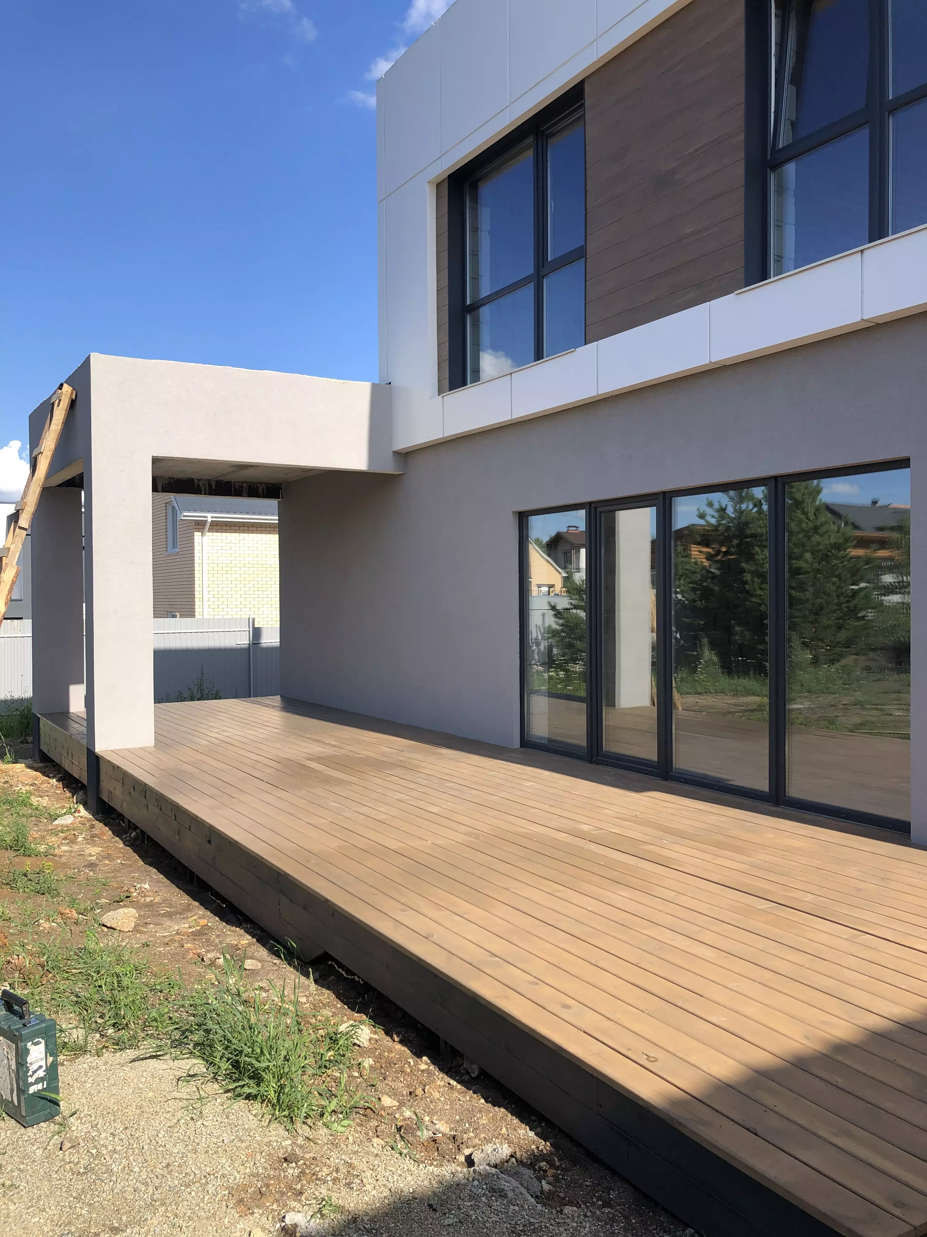 Построим стильную и современную террасу под ключ из дерева и дпк. Большой опыт позволит создать для Вас практически любые нестандартные решения.